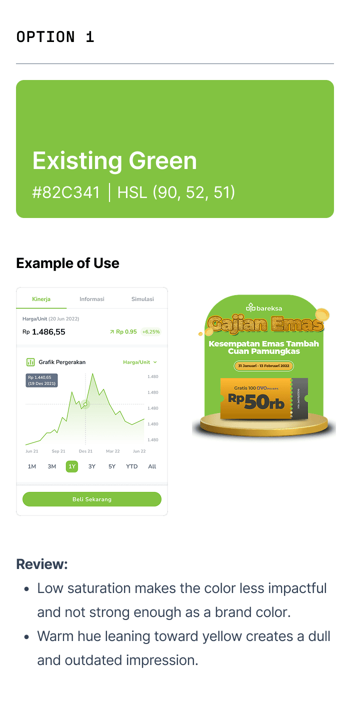 We explored and tested component by redesigning sample screens from the existing Bareksa app using the new system. This process allowed us to validate whether the new visual direction aligned with our intended vision. It also revealed valuable insights that guided the refinement, making the process inherently iterative.