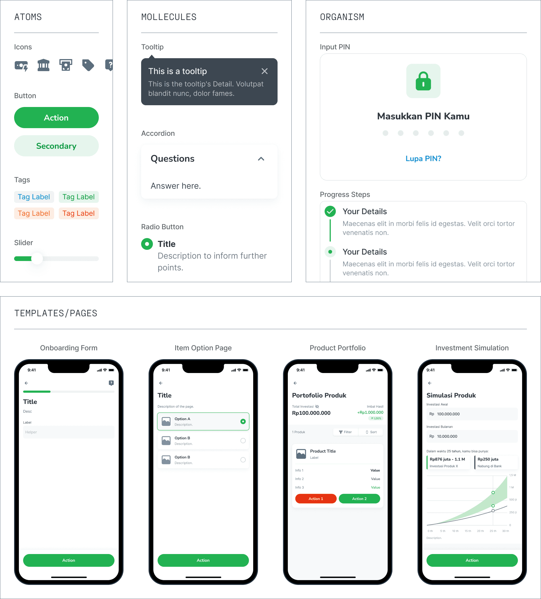 As Bareksa continued to grow over the years with the diverse range of investment option and ever-growing customer base, no structured and well-thought design system had been established to support this growth. The existing design workflows and interface became inconsistent and outdated, making it harder to ensure design scalability and cross-team efficiency.