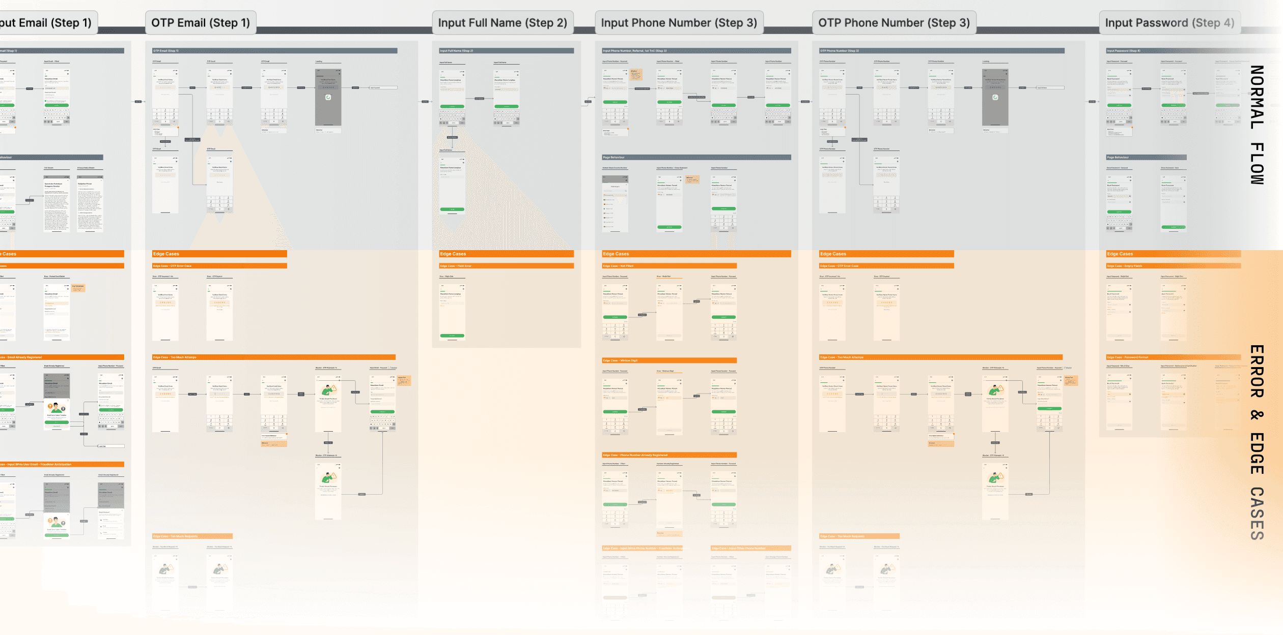 One of the critical aspects of this project was identifying and addressing edge cases. In some cases, mapping and solving edge cases takes more effort than designing the regular flow. We thoroughly identify every potential edge case across the onboarding journey and worked on solutions for each of them: