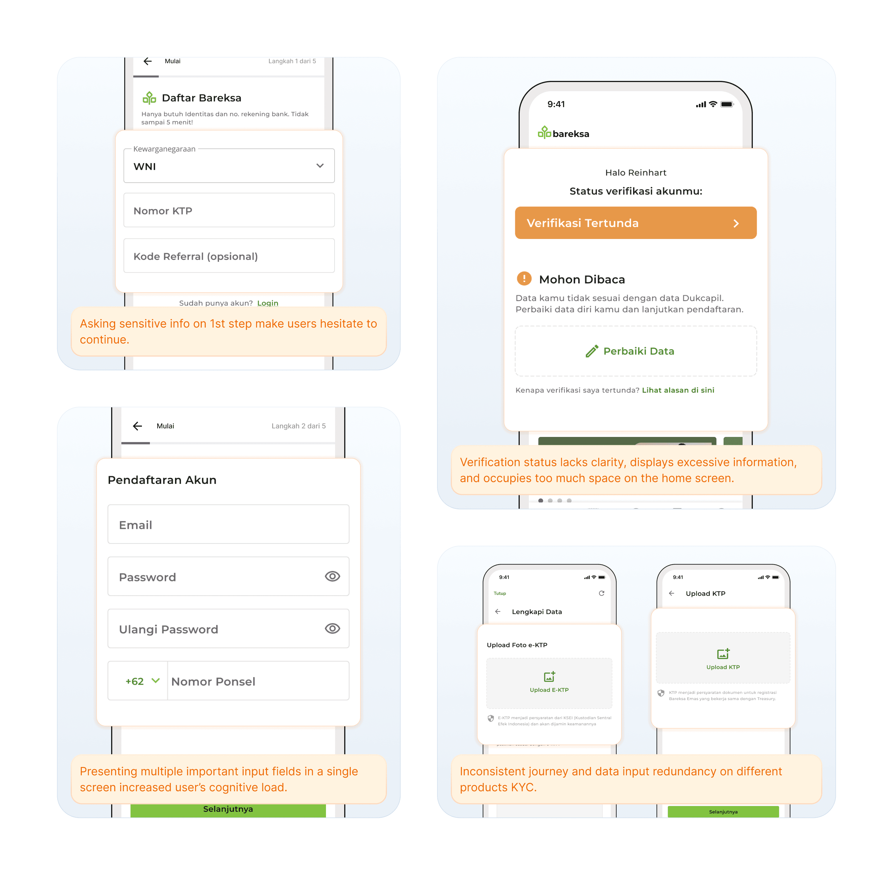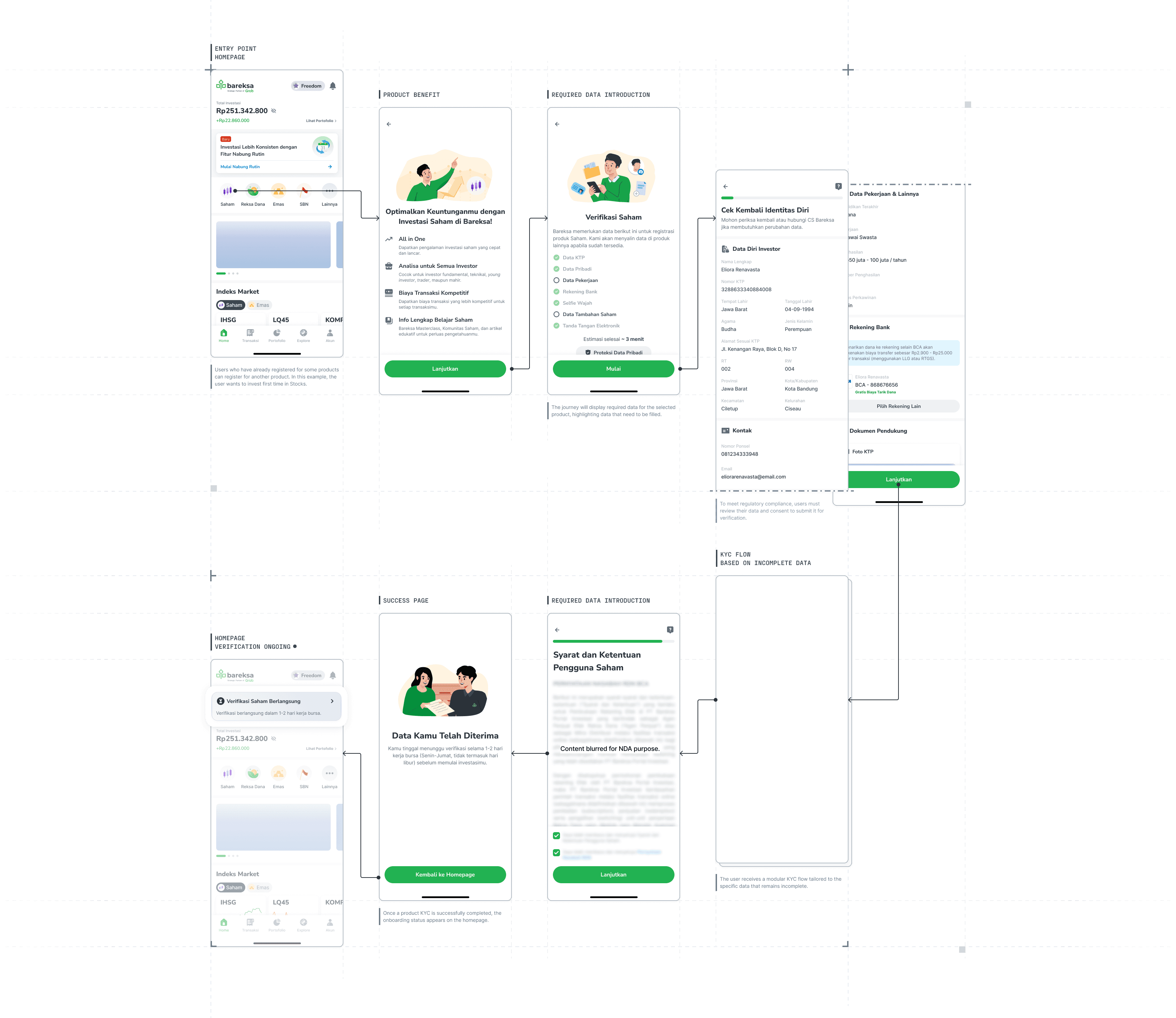 The initial onboarding at Bareksa, which was originally designed for a single investment product, had to be completely restructured to accommodate onboarding for all products from the start of user registration. This change introduced a series of challenges that required a complete redesign of the entire onboarding journey and verification workflow.